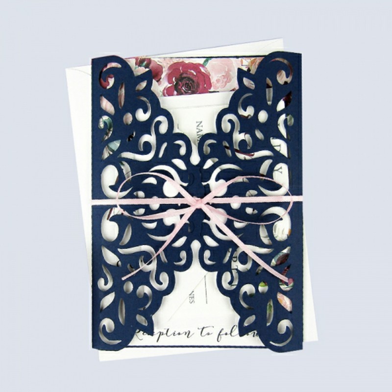 Two door laser cut Wedding card with light liyewel design.